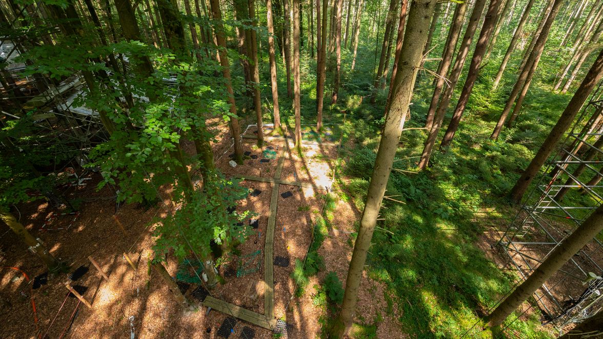 Der Kranzberger Forst (Längengrad: 11° 39′ 42″ E, Breitengrad: 48° 25′ 12″ N, Höhe 490 m ü.d.M.) liegt in Süddeutschland, ca. 35 km nordöstlich von München. Die Versuchsfläche ist ca. 0,5 ha groß und liegt 490 m über dem Meeresspiegel. Die jährliche durchschnittliche Niederschlagsmenge beträgt 750–800 mm pro Jahr, davon 460–500 mm während der Vegetationsperiode (Mai–September). Die jährliche durchschnittliche Lufttemperatur beträgt 7,8 °C, im saisonalen Mittel 13,8 °C. Am Standort wachsen Rein- und Mischbestände von Fichten und Buchen auf Luvisol aus Löss über tertiären Sedimenten, die für eine hohe Nährstoff- und Wasserversorgung sorgen (Göttlein et al. 2012; Pretzsch et al. 1998). Ab ca. 1 m Bodentiefe verhindert eine relativ dichte Schicht aus sandigem-schluffigem Lehm ein tieferes Wurzelwachstum und damit die Wasseraufnahme (Häberle et al. 2012) fast vollständig.