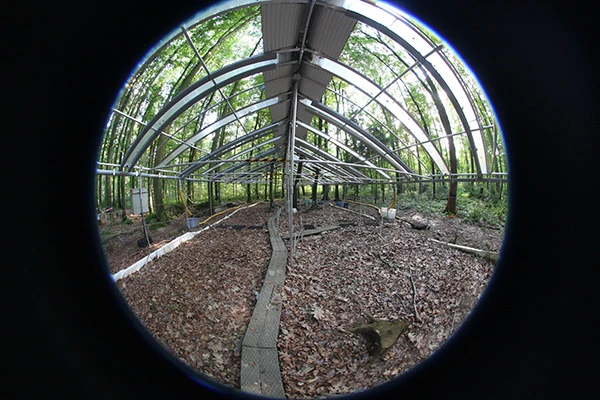 Auf der Versuchsfläche im Kranzberger Forst wurden 12 Parzellen mit adulten Buchen und Fichten etabliert. Sechs Parzellen wurden mit automatisch verschließbaren Dächern zum Regenausschluss ausgestattet. Im Zeitraum 2014-2018 wurden die Auswirkungen einer langanhaltenden Trockenheit auf ausgewachsene Buchen und Fichten im Vergleich zu Kontrollbäumen untersucht.